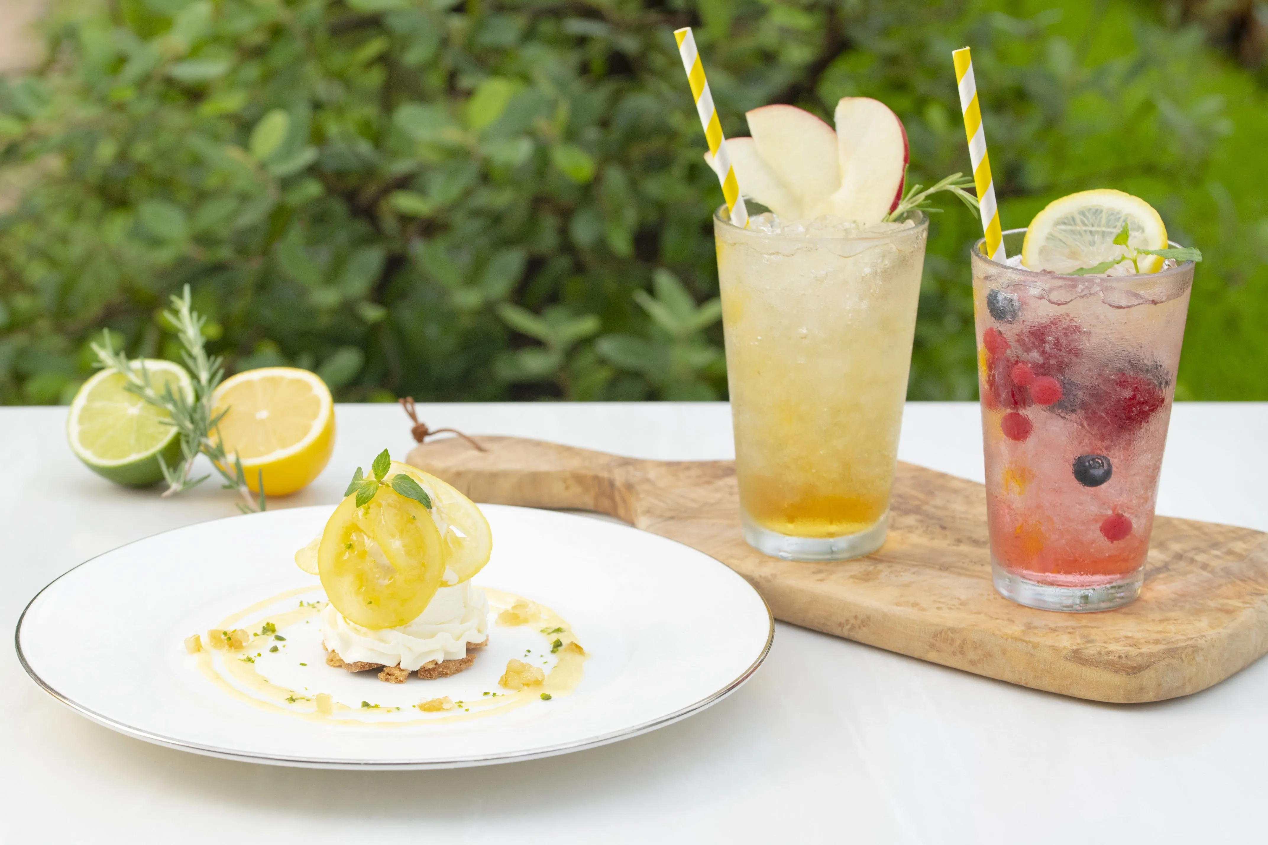 ドリンクは見た目にも涼しげな5種が登場。ハーブや柑橘類の香りがたっぷりのコーディアル(=ハーブや柑橘類を漬けたシロップ)を使用したノンアルコールドリンク「エルダーフラワーローズ」、「アップルコリアンダー」、「ライムレモングラス」の3種をご用意。また、シトラス系フルーツをたっぷりと使用し、見た目にも爽やかなアルコールドリンクとして「シトラスモヒート」、「シトラスマリン」の2種を提供いたします。
