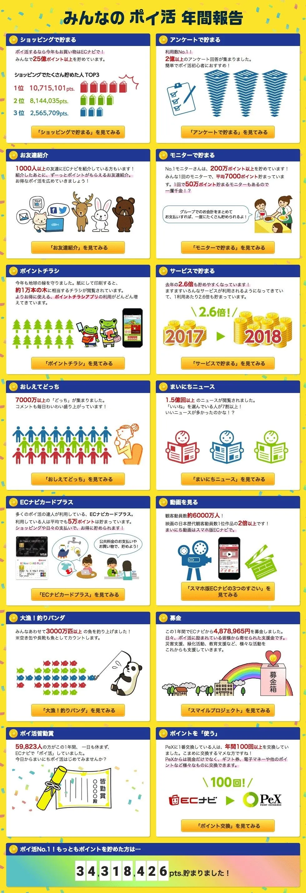 ・ポイ活NO.1!:最も貯めた人は34,318,426ポイント獲得。