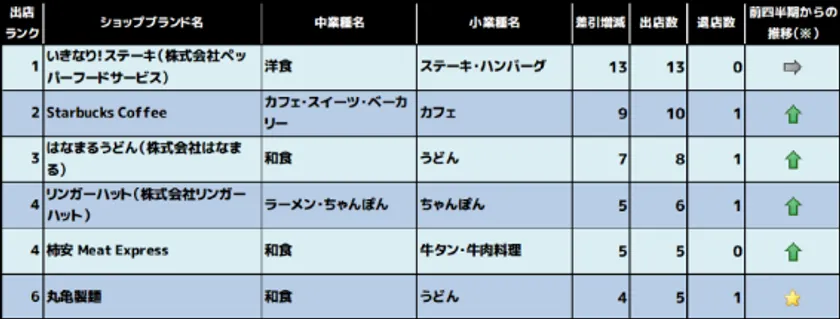なお、当四半期の差引出店数が同数の場合、前四半期に出店・退店がなくこの四半期にランクインしたブランド、また、前四半期よりも当四半期の差引出店数の増加が大きなブランドを優先して、上位20ブランドとしています。