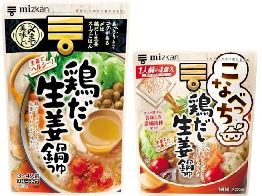 鍋つゆ市場においてトップシェア(※)のミツカンでは、ヘルシー感を求めるニーズに対し新フレーバーの「鶏だし生姜」をストレートタイプ「〆まで美味しい鍋つゆ(TM)」シリーズ、個食タイプ「こなべっち(TM)」シリーズそれぞれにおいて発売いたします。「おいしさ」と「ヘルシー」をキーワードに、鍋つゆ市場のさらなる活性化を目指します。