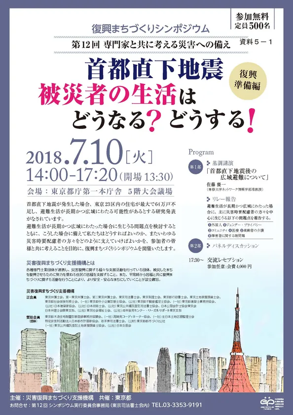 復興まちづくりシンポジウム 第12回専門家と共に考える災害への備え~復興準備編 「首都直下地震 被災者の生活はどうなる?どうする!」