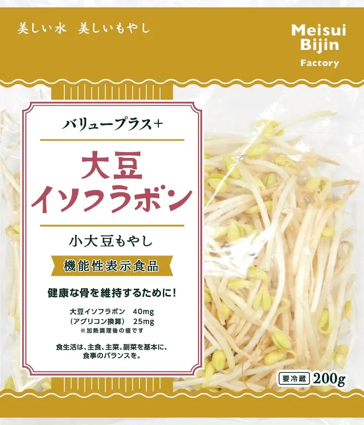 日本で一番売れているもやし「名水美人」(※1)を販売している名水美人ファクトリー株式会社(本社:大分県竹田市、代表取締役社長:若狹 二郎)は、「骨の成分の維持に役立つ」機能があることが報告されている大豆イソフラボンが含まれる機能性表示食品「大豆イソフラボン 小大豆もやし」を、2018年7月9日(月)に発売いたします。