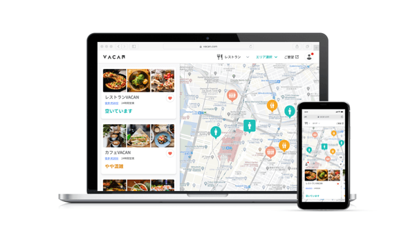 株式会社バカンが提供するリアルタイム空き情報配信プラットフォーム「VACAN」を利用して行われます。VACANには、マップ上で近くの施設等の空き・混雑状況を一覧できる「VACAN Maps」という機能があり、飲食店のリアルタイムの空き/混雑状況や営業情報をご確認することができます。また専用のアプリ等のダウンロードは不要です。