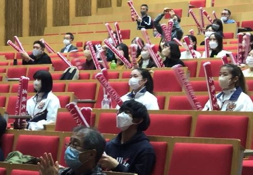 当日は大型スクリーンでレースを観戦しながら、應援團の吹奏楽部やチアリーディング部とともに、参加者全員で開催地の仙台に向けて声援を送ります。