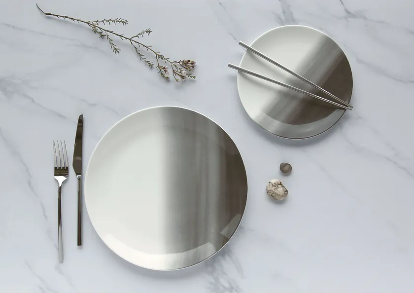 ウェッジウッドが誇るファイン ボーン チャイナの美しい乳白色のボディを、グレーのグラデーションが繊細に染め上げているかのような佇まいにはヴェラ・ウォンらしいモダンさが漂います。どんな色とも調和するグレーは、素材の色を引き立て、お料理をスタイリッシュに演出します。また、食材の色味やテーブルコーディネイトに合わせグラデーションの角度に動きをつければ、様々な表情をお楽しみいただけます。