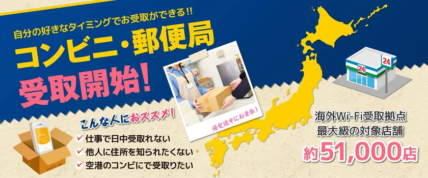 株式会社MAYA SYSTEM(本社:東京都新宿区、代表取締役社長:井上 千鶴)は、2018年7月5日(木)より、海外Wi-Fiレンタルサービス「jetfi(ジェットファイ)」の端末受取場所に全国約51,000店舗のコンビニと郵便局を追加し、端末受取場所を拡大いたしました。事前にjetfi Webサイトにてお申込みいただくと、お好きなコンビニ、郵便局でお好きな時間に端末を受け取る事ができるようになります。