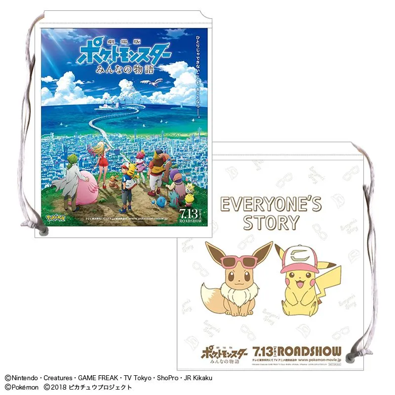 (1)ご購入金額にかかわらず、商品をお買い上げの方全員に「劇場版ポケットモンスター みんなの物語」ショッパーをプレゼント。表面はビジュアルイメージ、裏面はピカチュウとイーブイの可愛いデザインになっています。