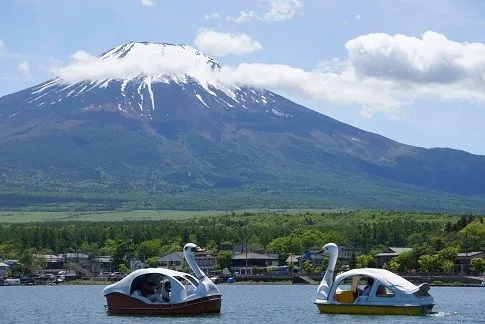 東京の住宅街を出発しておよそ2時間、富士山を間近に望む山中湖に到着。