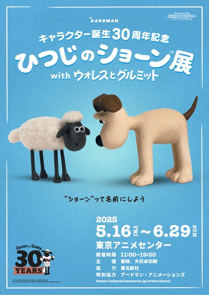 大日本印刷株式会社(DNP)が一般社団法人日本動画協会(AJA)と共同で運営する「東京アニメセンター in DNP PLAZA SHIBUYA」は、株式会社東北新社(本社:東京都港区)がライセンスを所有する、イギリス発クレイ・アニメーション「ひつじのショーン」が、今年でキャラクター誕生 30 周年を迎えるのを記念し、『ひつじのショーン展 with ウォレスとグルミット』を5月16日(金)から6月29日(日)の計45日間開催します。