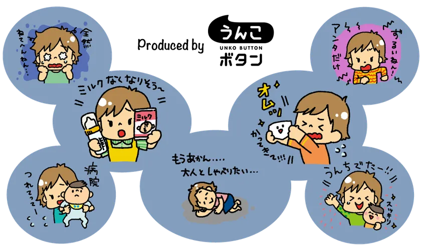 うんこボタンのLINEクリエイターズスタンプ、7月6日発売 子育て中のママの気持ちや育児のリアルを楽しくパパに共有