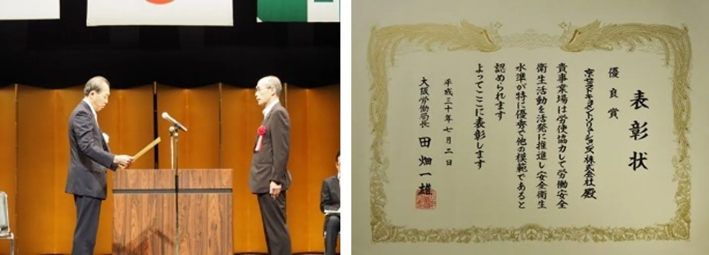 大阪労働局 田畑一雄様より賞状を頂く 表彰状