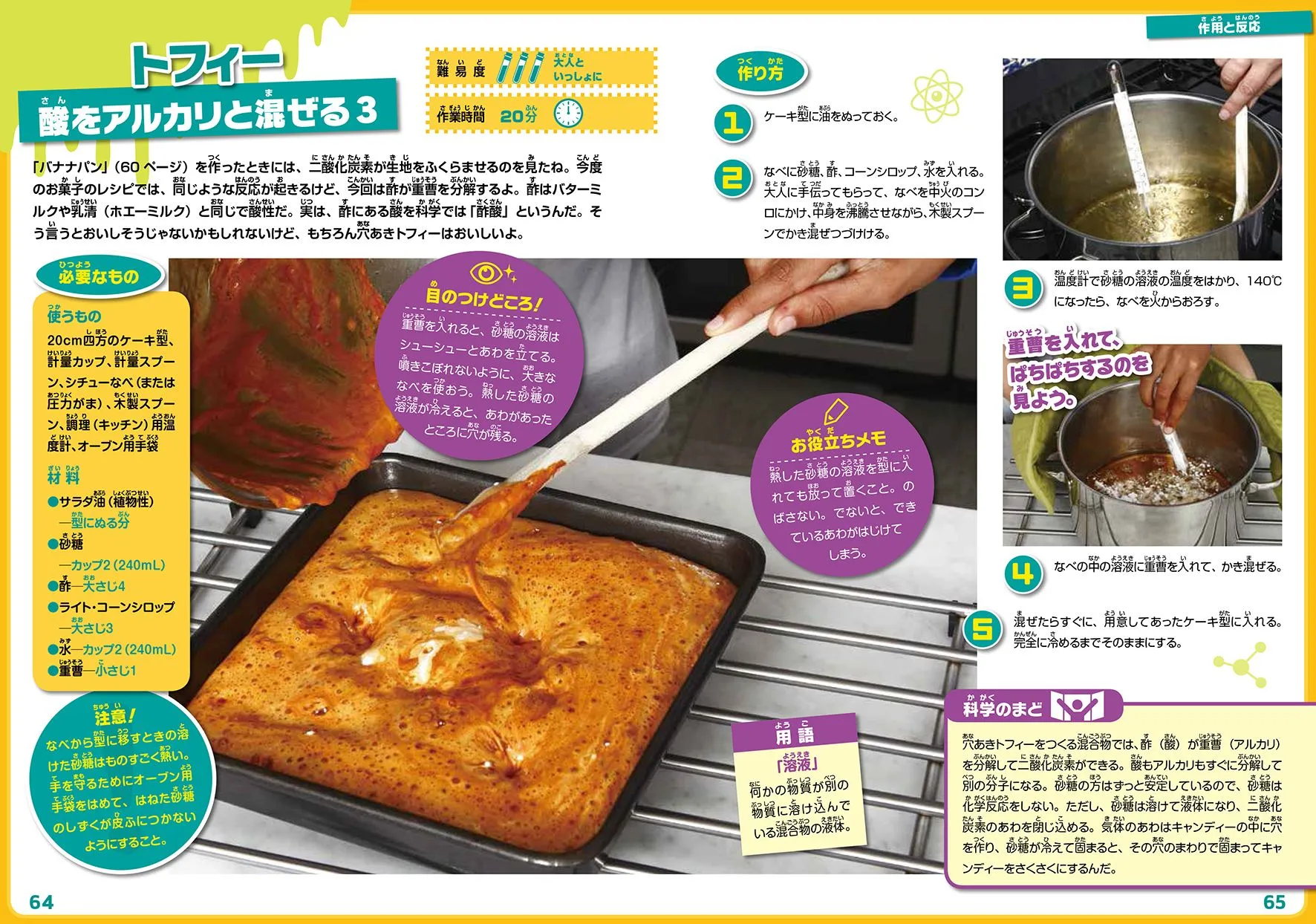 本書は、教師で子ども向け科学ライターのジョディ・ウィーラー・トッペンと、フードライターのキャロル・テナントが、子どもたちと実際に料理をつくりながら、その方法や成分を科学的に調べた、楽しくおいしい、夏休みの自由研究に最適な料理実験本です。