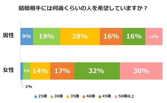~「結婚希望年齢、若干若め」「より年上の人が理想」の傾向へ~