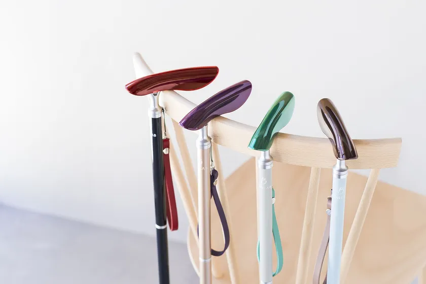 当製品は、今までの杖に対する「年寄りっぽい・足腰が不自由」などのネガティブなイメージを払拭し、手を杖に「乗せる」という新発想の軽快な使い心地、グリップの取り替えも可能な今までにないカラー展開により、誰もが気兼ねなく杖を持って歩ける社会の実現を目指したウォーキング・ツールです。