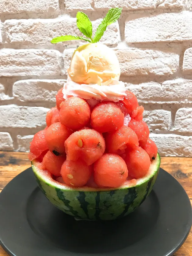 ■丸ごとフルーツかき氷「スイカ半玉かき氷」とは