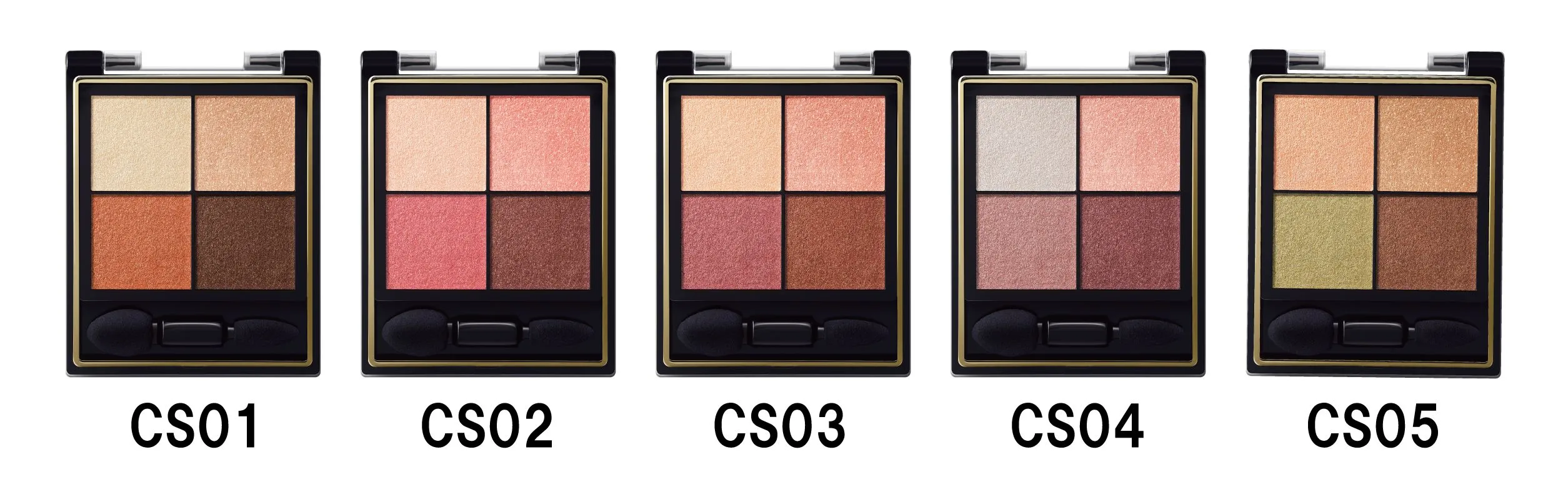 重ねてもくすまないクリアな発色で、ナチュラルに溶け合う絶妙な4カラー。微細なカラーパールを贅沢に配合し、重ねるほどに極上のツヤ感を演出します。さらに、ガラスパールなど大粒の輝きを凝縮した(右上の)シャイニーカラーで、きらめきのプラスオンも自由自在。うっとりするほどリッチな質感ながら、軽いタッチで伸びて重ねやすいテクスチャーにもこだわりました。