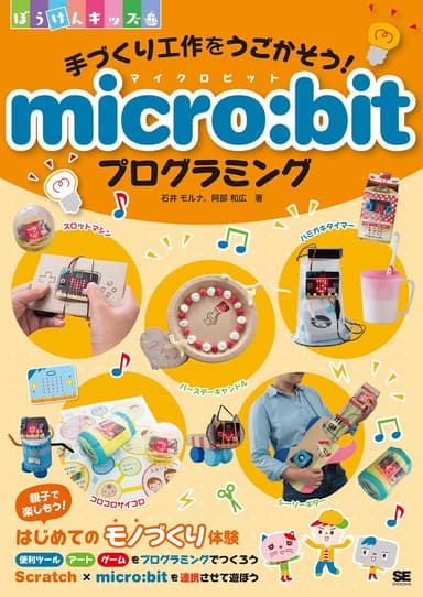 micro:bitを使って「モノづくり」をしよう!というのが、この本のテーマ。初心者でも、micro:bitとプログラミングの基本を遊びながら理解することができます。お菓子の箱やペットボトルなどの身近な素材で作ることができるゲームやお家を彩るアート、生活に役立つ便利ツールなど15作品を紹介しています。