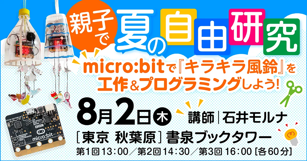 自由研究にオススメ! 子ども向けコンピューター「micro:bit」で 『キラキラ風鈴』をつくるプログラミング&工作ワークショップ