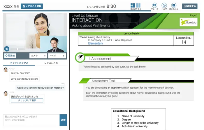 ・受講対象者(レベル):レアジョブレベル 4~7 (CEFR-J レベル A2.1~B1.2相当)