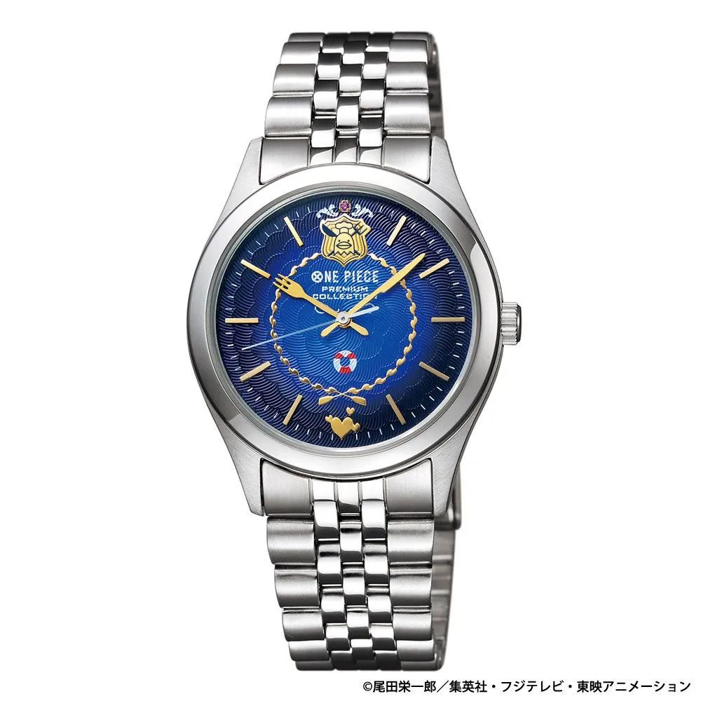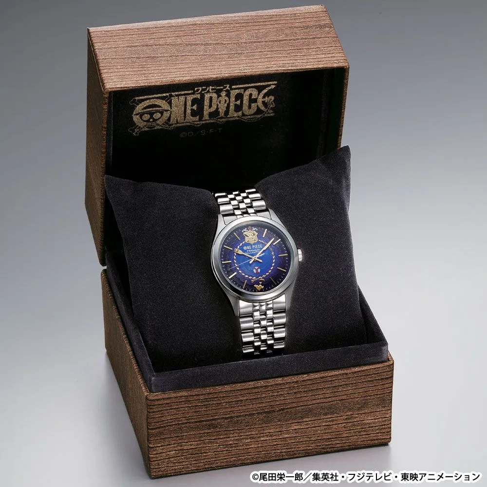 奇跡の海“オールブルー”をイメージしたグラデーションブルーの文字盤に、サンジが”父親”と呼ぶゼフや、家族同然に育った仲間たちがいるバラティエのマークなど、サンジにちなんだ様々なモチーフをデザイン。ナイフとフォークを模した時の針が駆けめぐるたび、いくつもの名場面が心によみがえります。