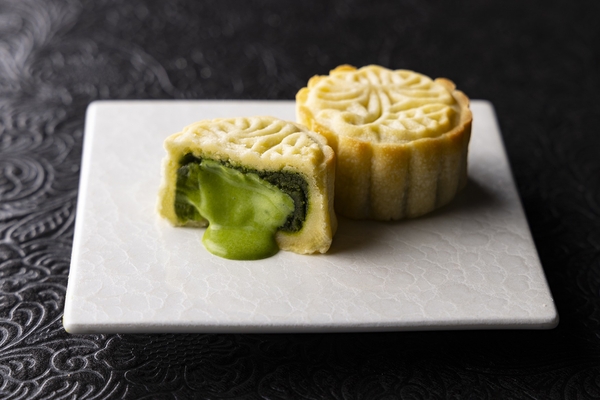 「抹茶の月餅」(写真② 右プレート内左下)