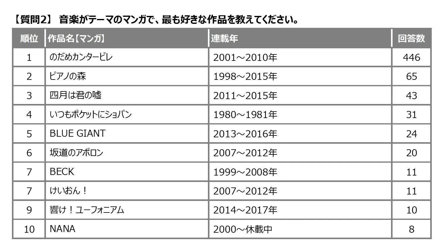 あなたが好きな「音楽」がテーマの映画・マンガ・アニメ作品は? 「のだめカンタービレ」、マンガで1位、映画、アニメで2位にランクイン