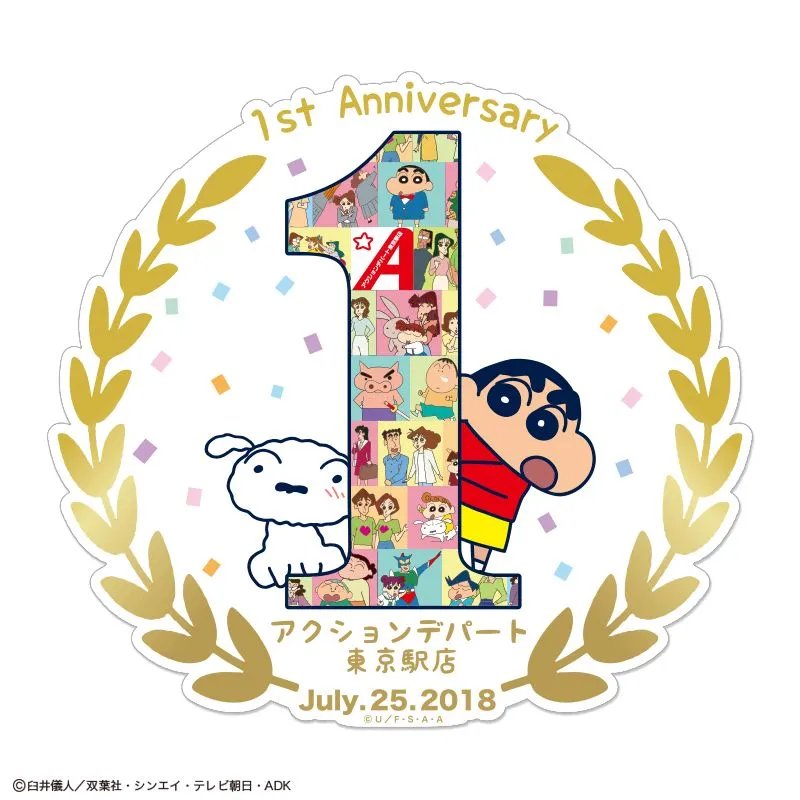 国内・海外の有名キャラクターグッズの企画・製造・卸し等を行う株式会社スモール・プラネット(本社:東京都八王子市、社長:吉野廣樹)が運営する「クレヨンしんちゃんオフィシャルショップ~アクションデパート東京駅店~」が、7月25日(水)にオープン1周年を迎えることを記念し、7月19日(木)より記念商品の販売やノベルティプレゼントを行う1周年記念フェアをスタートいたします。