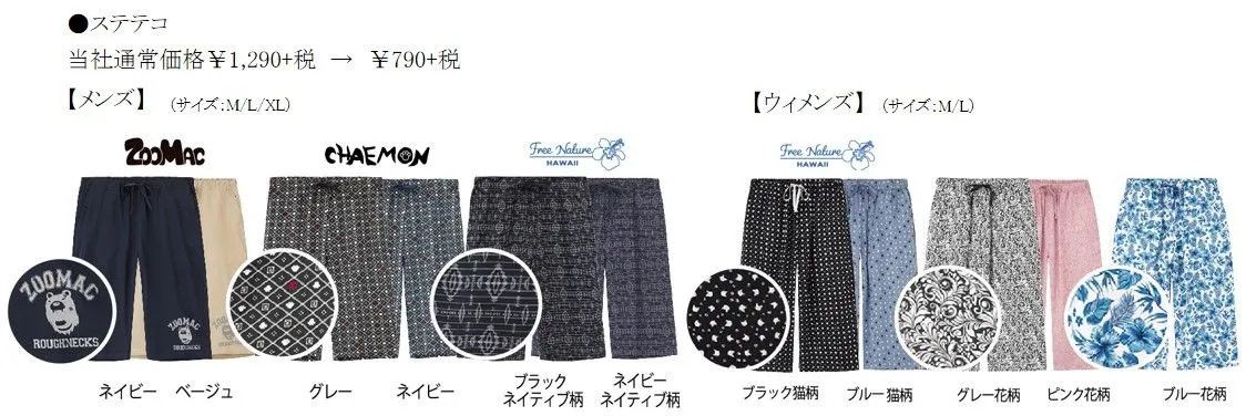 その他にも、何枚あってもうれしいプリントTシャツやステテコなど多数ご用意いたしました。