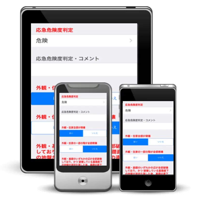 Smart Attackは、現場業務報告分野で多くの実績を有していますが、かねて被災地域の自治体向けに、罹災証明書発行の為の住家被害認定調査業務に特化したバージョンを開発していました。