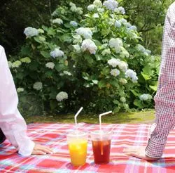 当館のミュージアムガーデンは、六甲山の自然と調和した庭をコンセプトに植栽を行い、約300種類の四季折々の木々や花々が観賞できます。西洋アジサイ、ヤマアジサイ、アメリカアジサイなど様々な種類のアジサイを植栽しており、花色もホワイトやブルーなど、各所でミュージアムガーデンを彩ります。当館内にあるシュトラウス・カフェのテラス席は、アジサイ“アナベル”や夏の花に囲まれ優雅なランチやティータイムをお過ごしいただけます。 また、カフェのテラス席以外にも木陰や水辺など暑さを避けてミュージアムガーデンでゆったりとすごしやすいこの時期、レジャーシートの貸し出しや、ドリンクメニューをテイクアウトできるサービスをご利用いただけます。