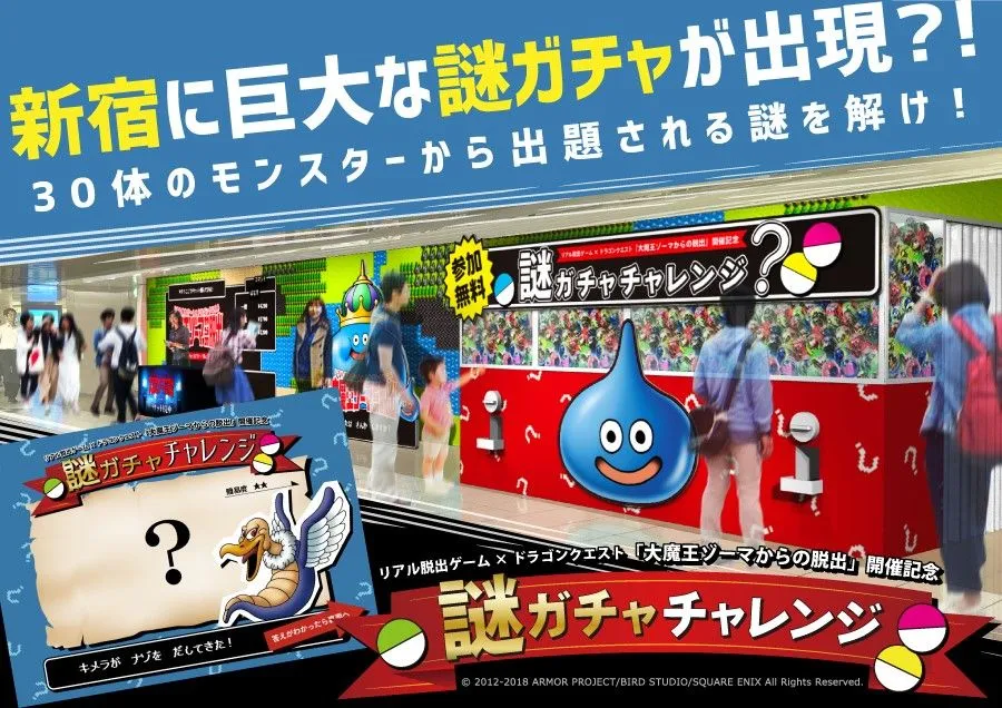 超巨大"ガチャ"が新宿に出現?! リアル脱出ゲーム×ドラゴンクエスト「大魔王ゾーマからの脱出」開催記念 参加無料!『謎ガチャ チャレンジ』 ~30種類のモンスターから出題される謎を解け!~