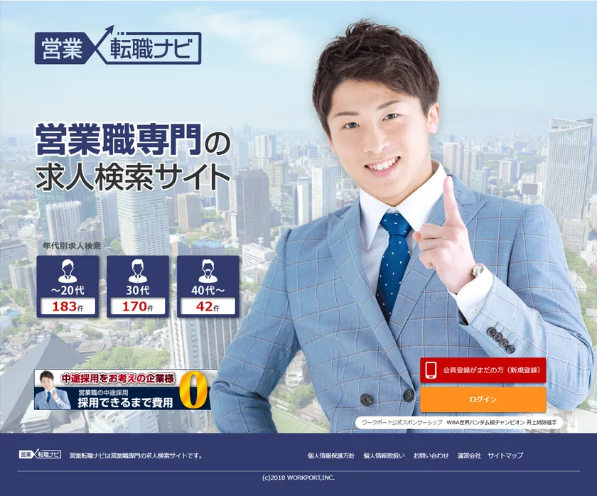 井上 尚弥選手がイメージキャラクターの『営業転職ナビ』登場 初期掲載費用ゼロ!採用成功報酬額の特別価格キャンペーンを実施