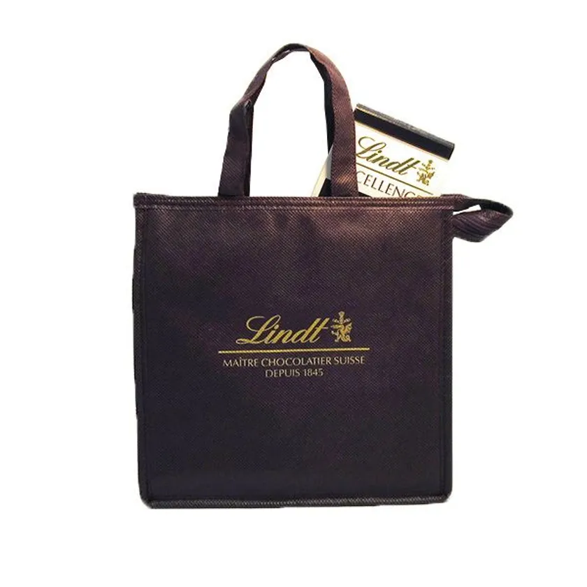 暑い時期でも安心してお持ち帰りいただけるように、リンツの保冷バッグに保冷剤を入れて提供します。