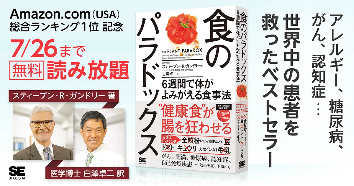 株式会社翔泳社(本社:東京都新宿区舟町5、社長:佐々木幹夫)は、『食のパラドックス 6週間で体がよみがえる食事法』(スティーブン・R・ガンドリー/著、白澤卓二/訳)を2018年7月20日(金)~7月26日(木)の期間限定で、全ページ無料公開します。