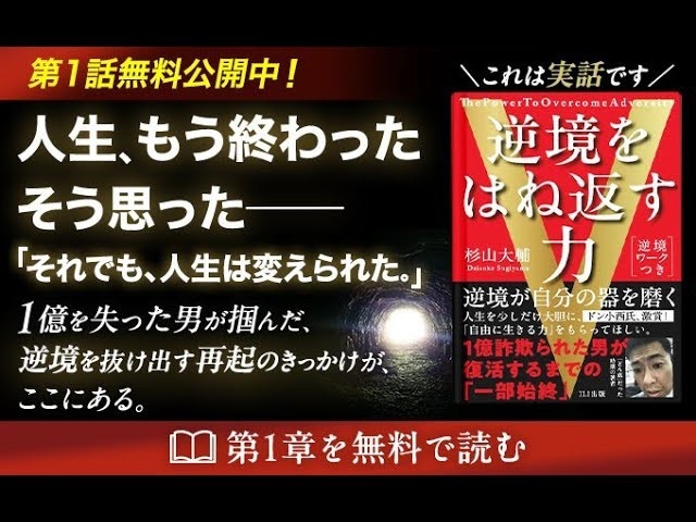 起業家‧教育者‧社会活動家として多様な活動を展開する杉山大輔が、自らのどん底からの復活劇を赤裸々に綴った書籍『逆境をはね返す力』(ILI出版)を、2025年8月29日にAmazonにて発売します。本書は、金融詐欺に巻き込まれ、すべてを失った著者が、うつ状態のなかで希望を見出し、再び社会に立ち上がっていくまでの軌跡を描いています。単なる回顧録ではなく、読者が自らの逆境に立ち向かうための「実践書」としても活用できるよう、ワークシートや図解も充実。