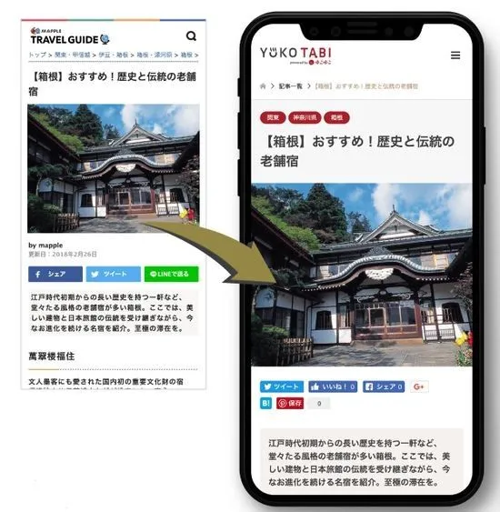 今回、ゆこゆこの温泉旅行メディア「YUKOTABI」(https://www.yukoyuko.net/yukotabi/)への「MAPPLEトラベルガイド」コンテンツの配信がスタートし、「YUKOTABI」で温泉旅がさらに楽しくなる幅広い観光旅行情報を閲覧することが可能になりました。