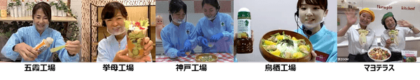 各工場とマヨテラス一斉に繋いで行うのは、2月に実施した「マヨネーズの日」のイベントに続き2回目のこと。今回も全工場と息を合わせるために、開始ギリギリまで練習しました。