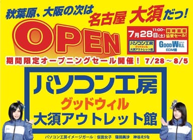 秋葉原、なんばの次は名古屋大須!地域最大級のPCアウトレット館 「パソコン工房 グッドウィル 大須アウトレット館」が 7月28日(土)オープン! iiyama PC他、良品アウトレットを現品特価で大放出!