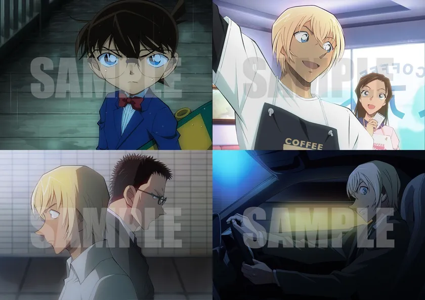 決意の中に寂しさを見せる雨に濡れたコナン、愛車でドライブ中・榎本梓と喫茶ポアロで開店準備中・公安警察官・風見裕也と密会!?中と、トリプルフェイスを表現した安室透。事件の合間の“ある日(1DAY)”を切り取った、より2人を身近に感じさせるイラストとなっています。