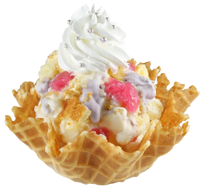 内容 フレンチバニラアイスクリーム、ヨーグルトテイストアイスクリーム、スミレホイップクリーム、スポンジケーキ、カシスジュレ、グラハムパイクラスト、ライチソース、ホイップクリーム、アラザン