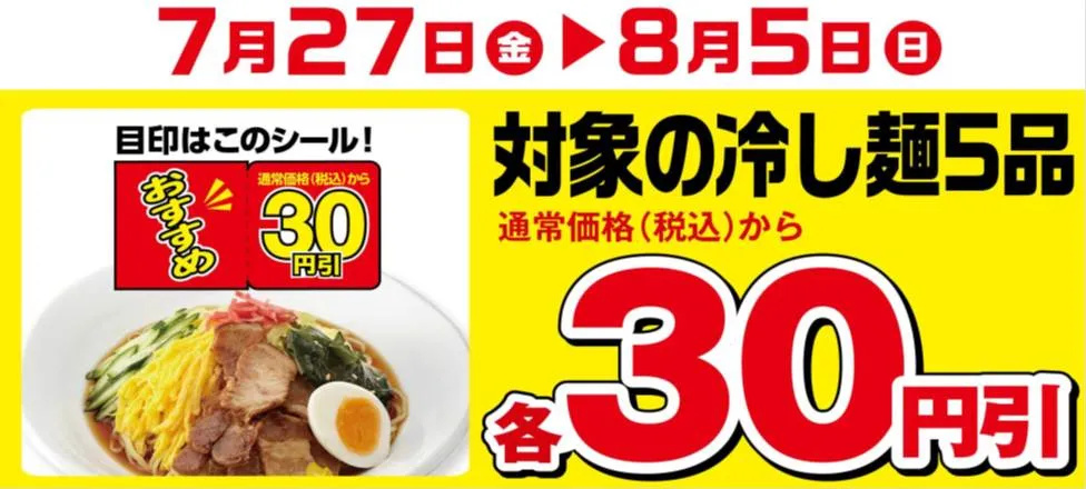 ■対象商品:「7種の具材冷し中華」「だし香るつゆざるそば」「大盛冷しぶっかけ
