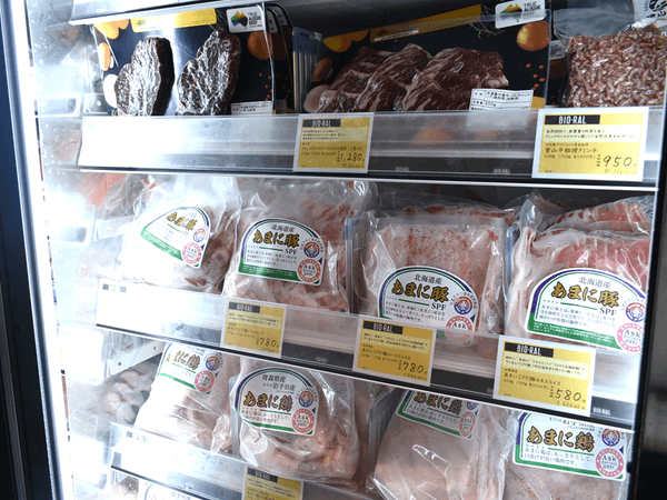 畜産冷凍コーナーでは、オーガニック牛やライフオリジナルの“あまに豚・あまに鶏”の冷凍商品を展開しています。