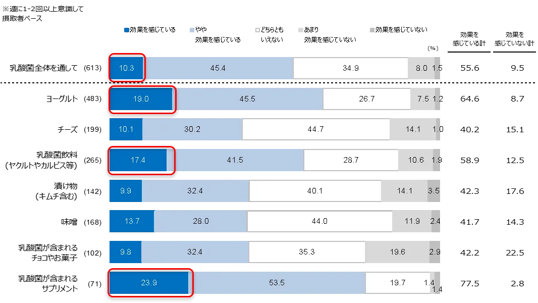 ■乳酸菌には腸内環境を整えることを期待しているが、実際に効果を感じているのは1~2割程度に留まる。