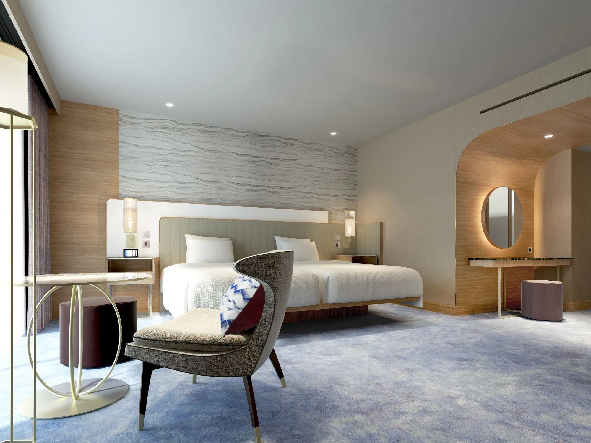 全てのお客様にきめ細やかで上質なサービスをご提供し、ゆったり過ごしていただけるよう、平均客室面積をこれまでの約35平米から約50平米へと広げます。このため、全館の客室数は、改装前の半数に近い約270室とします。