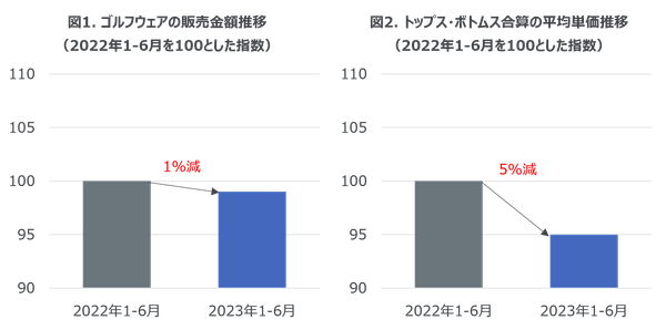・2023年上半期のゴルフウェア販売は金額前年比1%減。