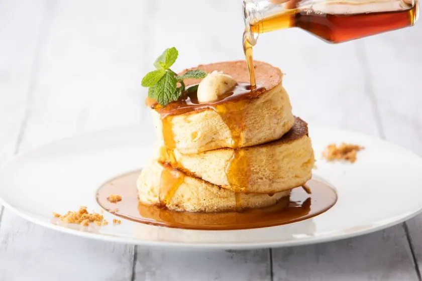 富士山溶岩でパンケーキを焼くことで、遠赤外線効果により分子の揺れをおこし、パンケーキを高温で短時間の内に焼くことが出来るので、必要な水分を蒸発させることなく、フワトロっとした食感溢れる至福な美味しいパンケーキを焼き上げることができます。
