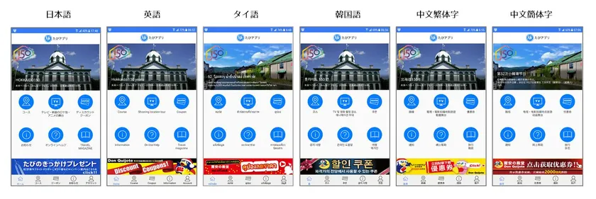 「たびアプリ」は、北海道以外の国内エリア(沖縄、九州、関西等)だけでなく台湾・香港・タイなどの海外エリアもプリインストールスポットとして順次追加しながら、世界155の国・地域で無料配布いたします。非対応言語国では英語で表記配布されます。