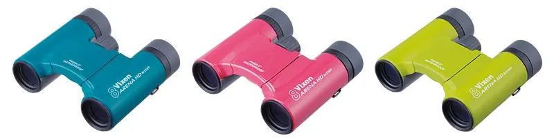 『アリーナHD8×21WP』は、携帯性に優れた、軽量・コンパクトな双眼鏡です。わずか190gの手のひらサイズで、左右を折りたたんでしまうことができるため、バッグの中でじゃまにならないキュートなボディです。カラーバリエーションは女性にも手に取りやすい、ポップなカラーのブルー・グリーン・ピンクでラインナップしています。
