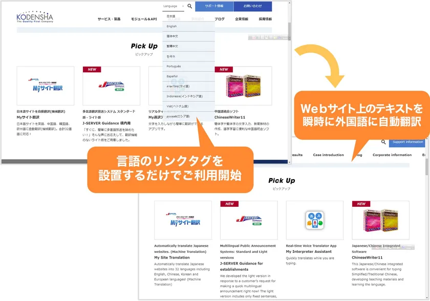 同 導入実績紹介: https://www.kodensha.jp/index/introduction/service/my-site-translation/