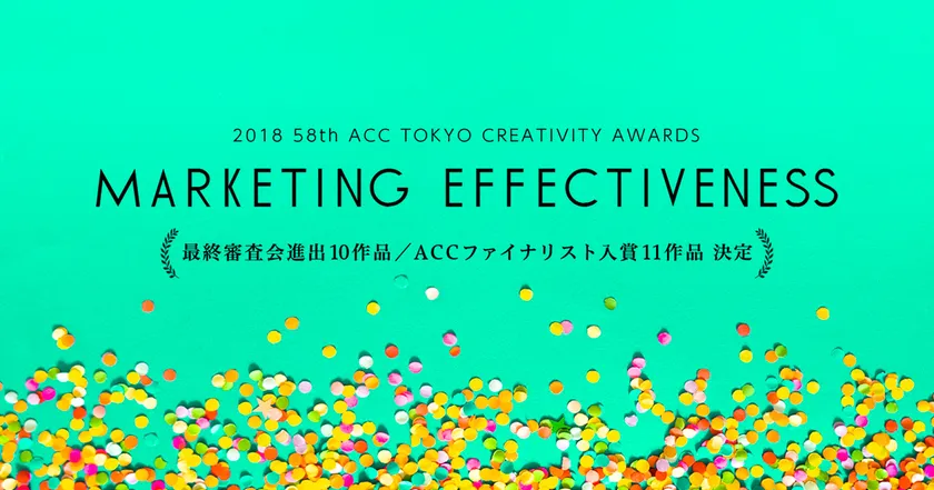 日本最大級のアワード 「2018 58th ACC TOKYO CREATIVITY AWARDS」 マーケティング・エフェクティブネス部門の ファイナリスト入賞作品発表! ~上位10作品は、8月30日開催の 最終公開プレゼンテーション審査会に進出!~